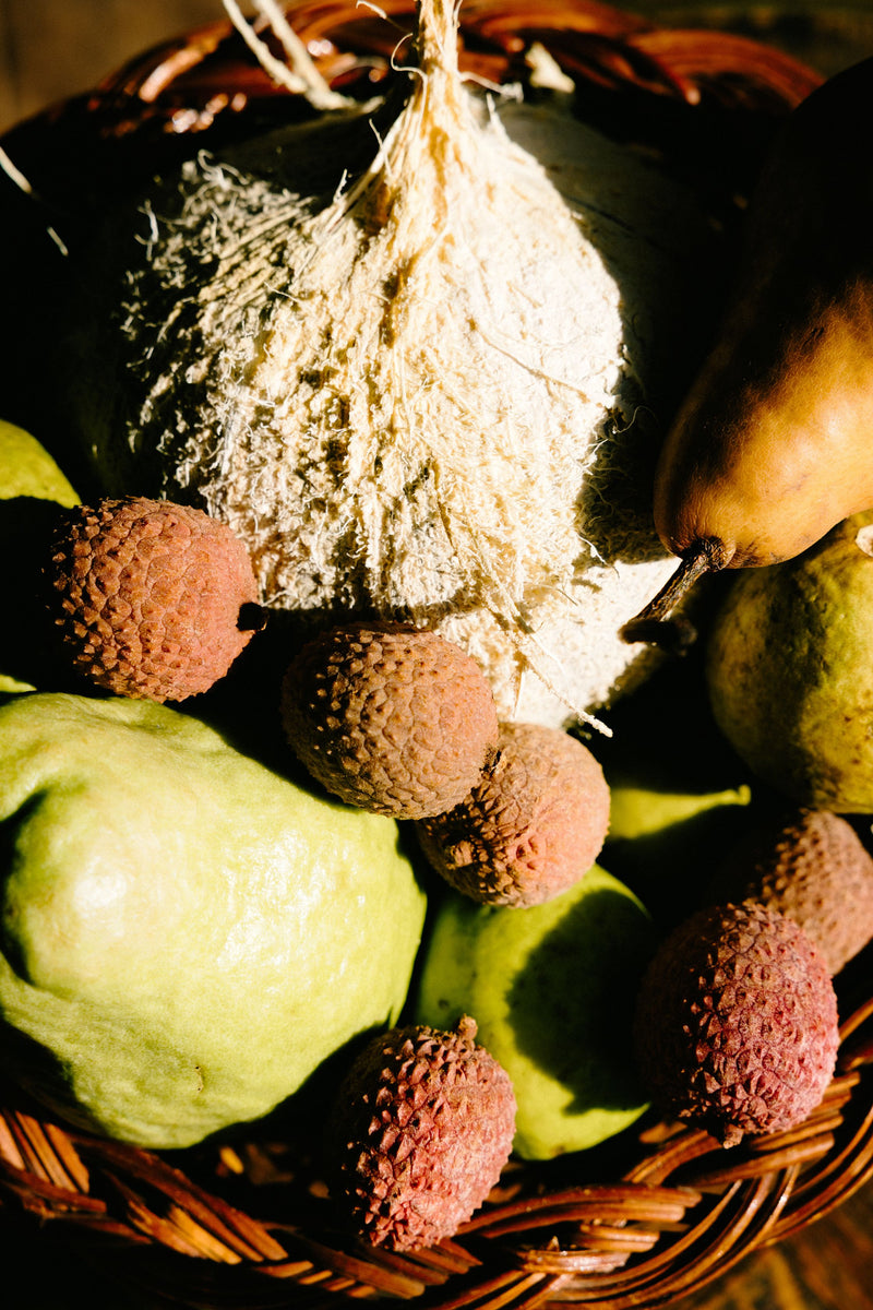 Middle: Creamy guava flesh, coconut milk, frangipani petals, lychee nectar