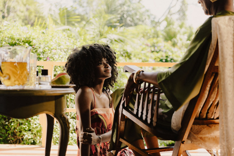 Sparkling pear water and bergamot open the scent, fresh and luminous, like sunlight on skin. At the heart, creamy guava, coconut milk, frangipani petals, and a whisper of lychee nectar create a soft, milky fragrance that feels close and personal. Warm base notes of solar musk, Tahitian vanilla, and beechwood evoke sun-warmed wood, the rhythm of a rocking chair, and a home held in quiet care.